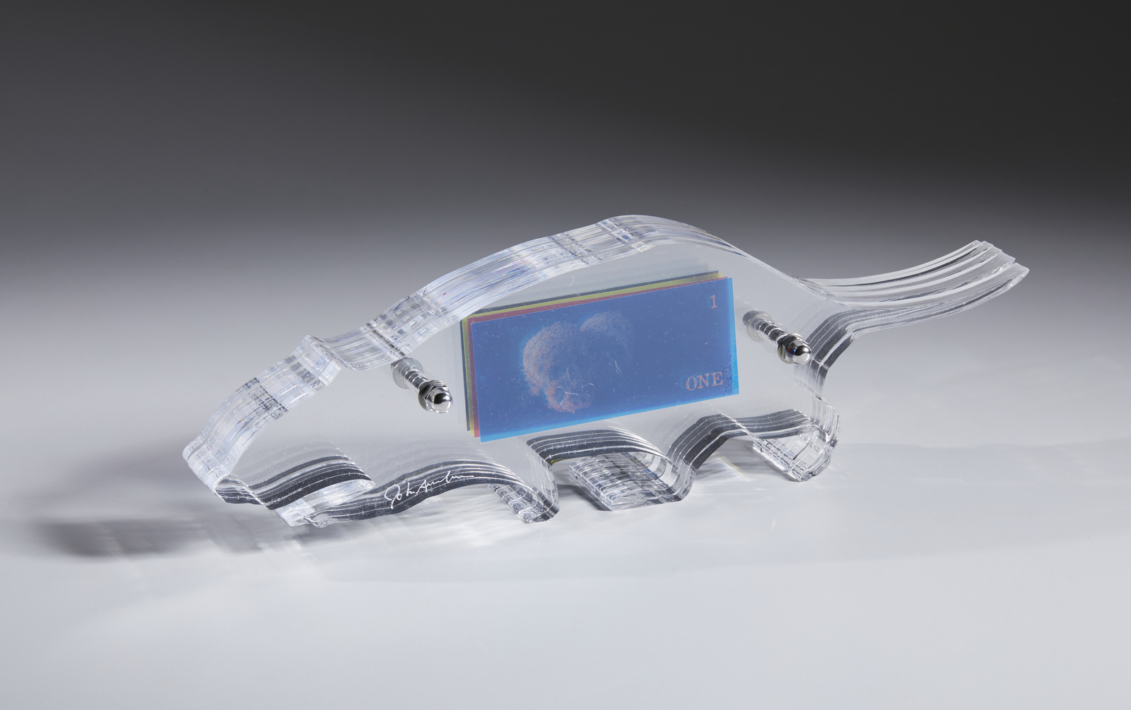 Pezzo unico. Lotto unico composto da due opere: una scultura cassaforte in plexiglass (Safe box)