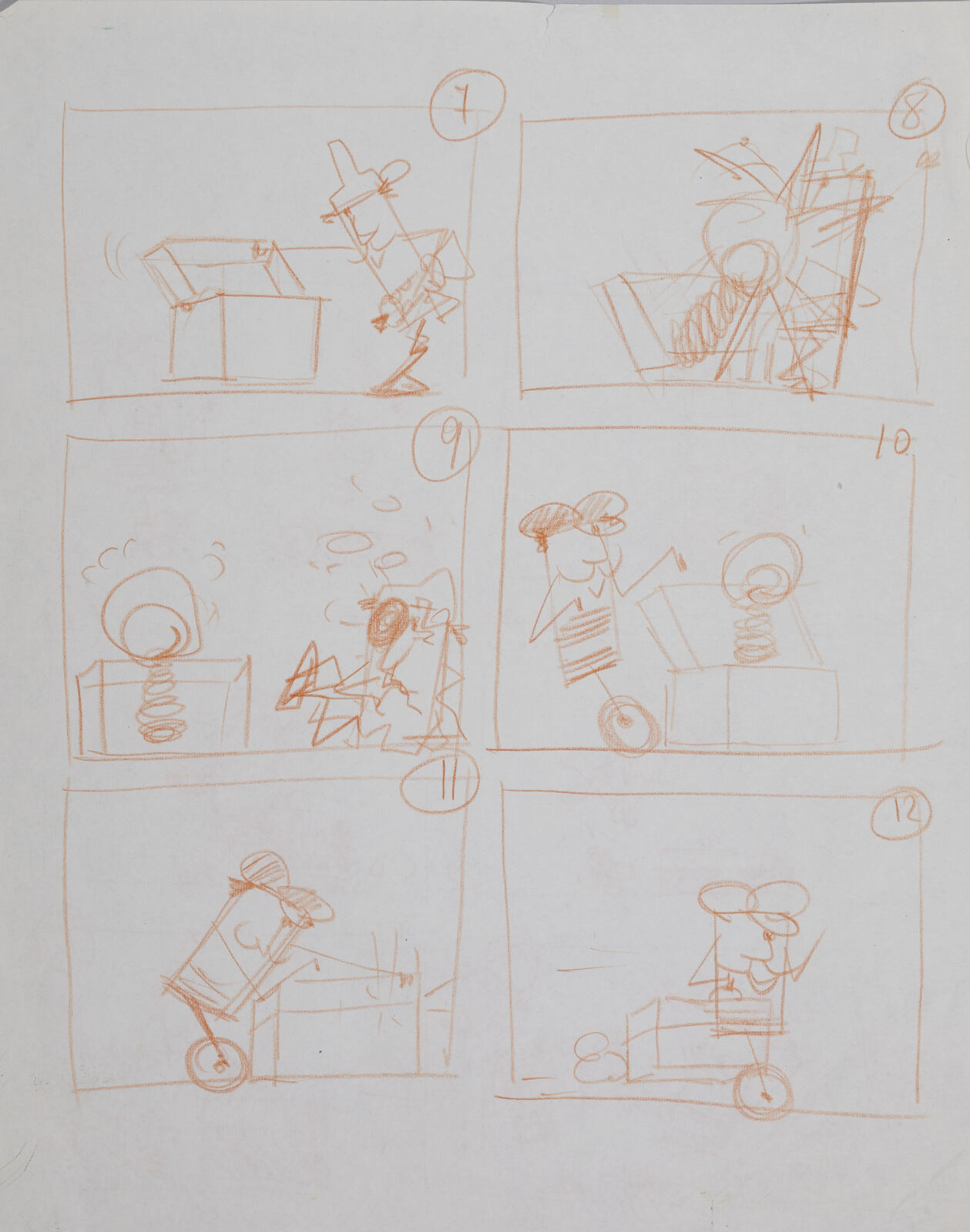 Il lotto proviene dagli archivi dei collaboratori della Lodolo Film, storica società di spot pubblicitari e di animazione italiana nata verso le fine degli anni 50. I Posteros, personaggi di fantasia, primitivi del futuro, nascono dalla collaborazione di Pino Pascali con la Lodolo film nel1958, un anno prima del suo diploma all’Accademia di Belle Arti di Roma; sodalizio che durò sino al 1967. Sandro Lodolo, titolare della casa di produzione pubblicitaria, e Pino Pascali, nel ruolo di creativo, realizzarono innumerevoli spot e cartoons pubblicitari. Gli Intermezzi che videro proprio i Posteros come protagonisti furono eseguiti , sia in bianco e nero che a colori, nel 1962 e nel 1968, anno della morte di Pascali, quando vennero ripresi da Lodolo come studio per i personaggi di un nuovo contenitore pubblicitario del secondo programma della Rai.