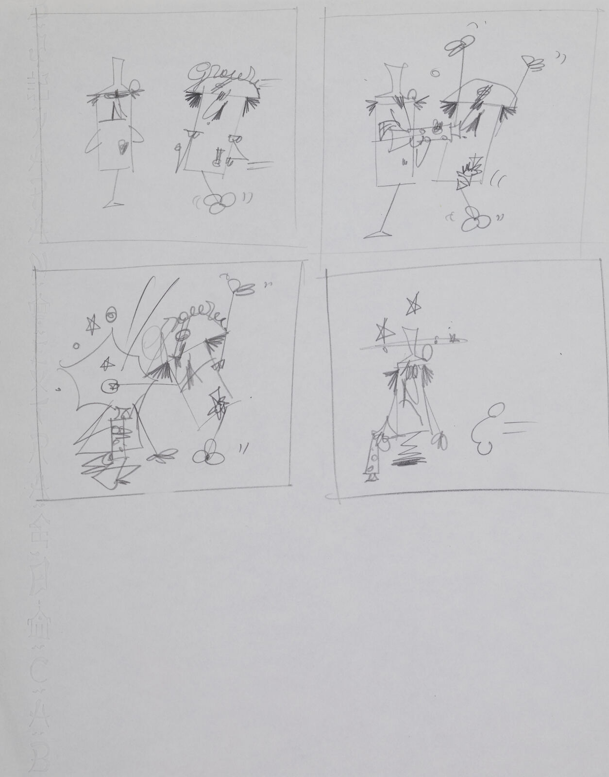 LODOLO FILM Della serie Sketches dei Posteros . mista su carta. Cm 21,00 x 29,00. Il lotto proviene dagli archivi dei collaboratori della Lodolo Film, storica società di spot pubblicitari e di animazione italiana nata verso le fine degli anni 50. I Posteros, personaggi di fantasia, primitivi del futuro, nascono dalla collaborazione di Pino Pascali con la Lodolo film nel1958, un anno prima del suo diploma all’Accademia di Belle Arti di Roma; sodalizio che durò sino al 1967. Sandro Lodolo, titolare della casa di produzione pubblicitaria, e Pino Pascali, nel ruolo di creativo, realizzarono innumerevoli spot e cartoons pubblicitari. Gli Intermezzi che videro proprio i Posteros come protagonisti furono eseguiti , sia in bianco e nero che a colori, nel 1962 e nel 1968, anno della morte di Pascali, quando vennero ripresi da Lodolo come studio per i personaggi di un nuovo contenitore pubblicitario del secondo programma della Rai.