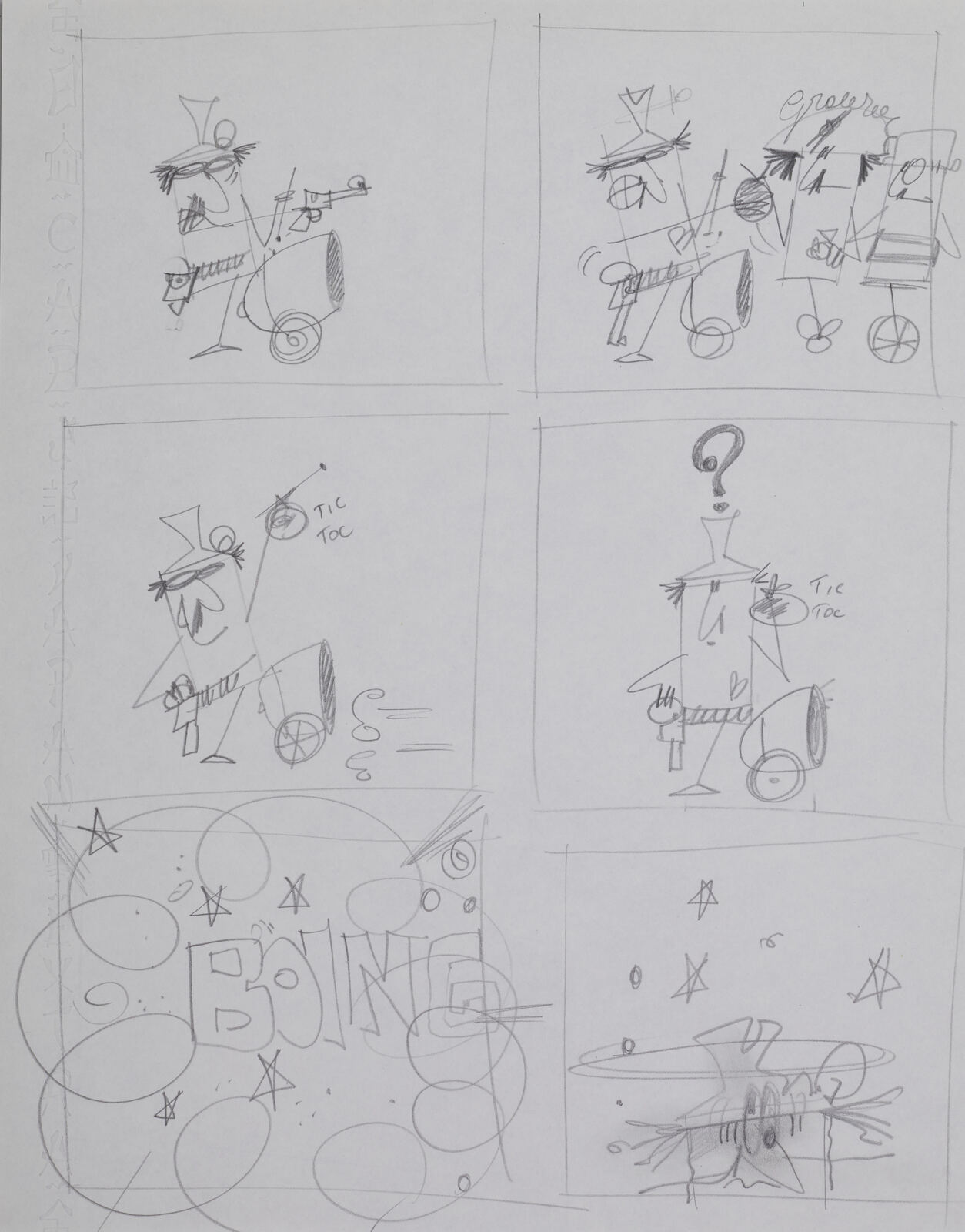 LODOLO FILM Della serie Sketches dei Posteros . mista su carta. Cm 21,00 x 29,00. Il lotto proviene dagli archivi dei collaboratori della Lodolo Film, storica società di spot pubblicitari e di animazione italiana nata verso le fine degli anni 50. I Posteros, personaggi di fantasia, primitivi del futuro, nascono dalla collaborazione di Pino Pascali con la Lodolo film nel1958, un anno prima del suo diploma all’Accademia di Belle Arti di Roma; sodalizio che durò sino al 1967. Sandro Lodolo, titolare della casa di produzione pubblicitaria, e Pino Pascali, nel ruolo di creativo, realizzarono innumerevoli spot e cartoons pubblicitari. Gli Intermezzi che videro proprio i Posteros come protagonisti furono eseguiti , sia in bianco e nero che a colori, nel 1962 e nel 1968, anno della morte di Pascali, quando vennero ripresi da Lodolo come studio per i personaggi di un nuovo contenitore pubblicitario del secondo programma della Rai.