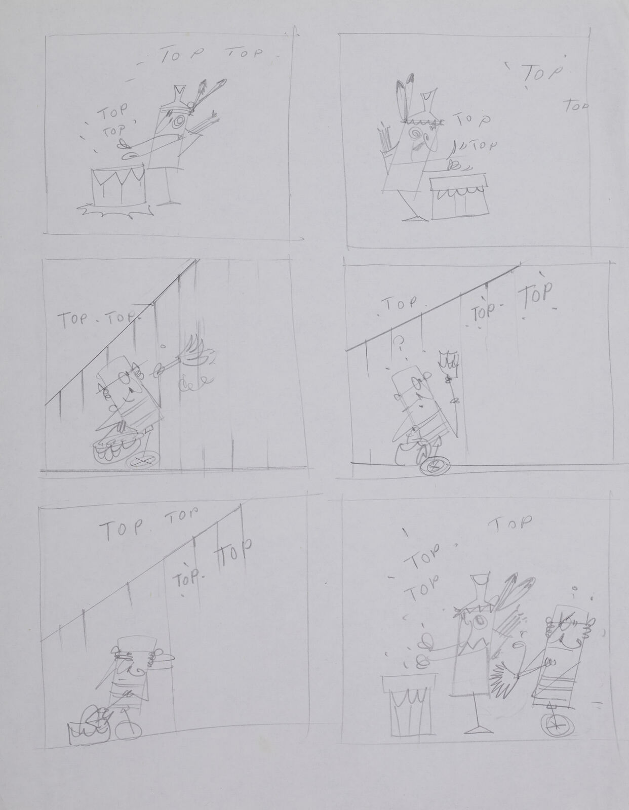 LODOLO FILM Della serie Sketches dei Posteros. mista su carta. Cm 21,00 x 29,00. Il lotto proviene dagli archivi dei collaboratori della Lodolo Film, storica società di spot pubblicitari e di animazione italiana nata verso le fine degli anni 50. I Posteros, personaggi di fantasia, primitivi del futuro, nascono dalla collaborazione di Pino Pascali con la Lodolo film nel1958, un anno prima del suo diploma all’Accademia di Belle Arti di Roma; sodalizio che durò sino al 1967. Sandro Lodolo, titolare della casa di produzione pubblicitaria, e Pino Pascali, nel ruolo di creativo, realizzarono innumerevoli spot e cartoons pubblicitari. Gli Intermezzi che videro proprio i Posteros come protagonisti furono eseguiti , sia in bianco e nero che a colori, nel 1962 e nel 1968, anno della morte di Pascali, quando vennero ripresi da Lodolo come studio per i personaggi di un nuovo contenitore pubblicitario del secondo programma della Rai.