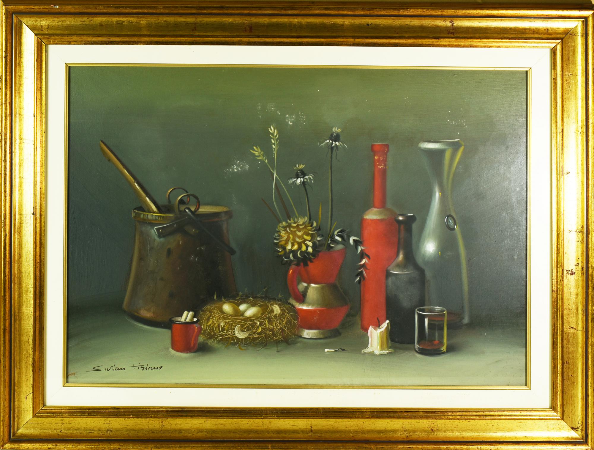 Tiziano Savian COMPOSIZIONE IPER-REALISTA olio su tela, cm 50x70 firma