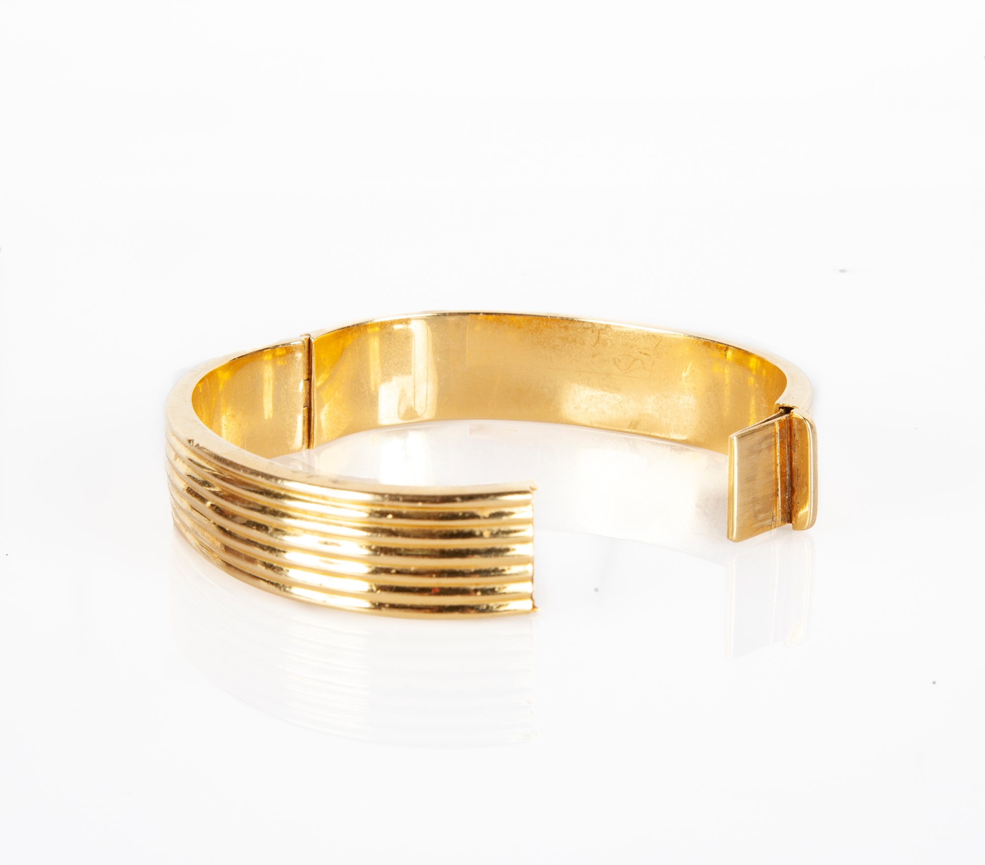 Bracciale rigido in oro Veste polso cm 18 Oro giallo 750/000. Peso complessivo gr. 41,80.