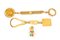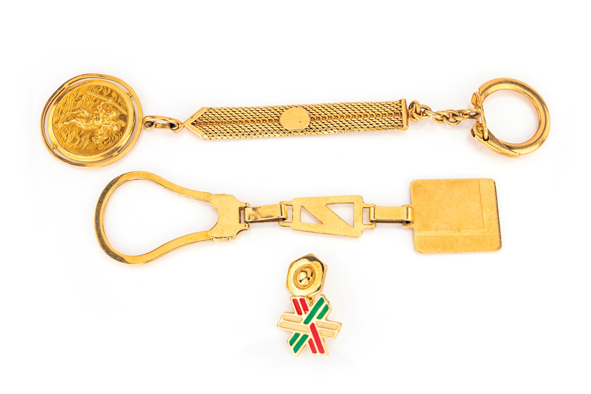 Gruppo di due portachiavi ed un gemello in oro e smalti
