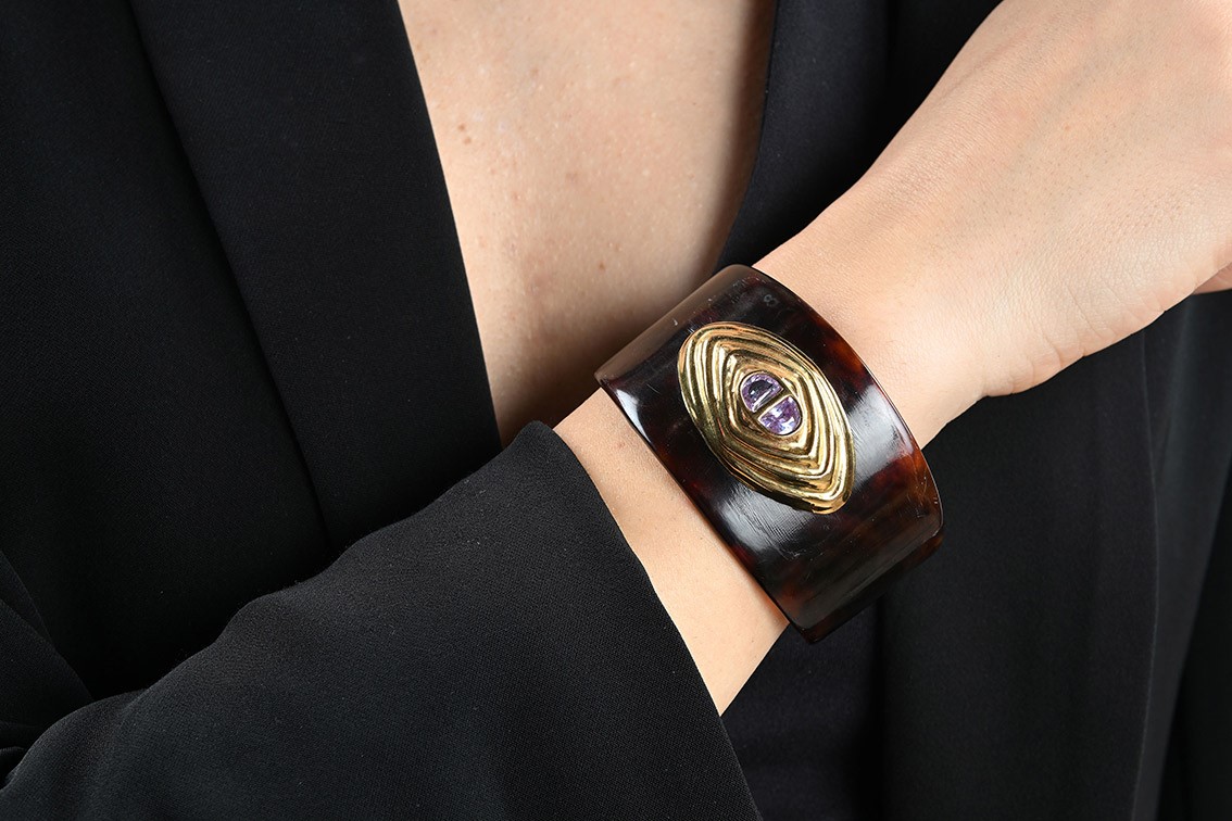 Bracciale in oro, bachelite e ametiste Veste polso 17 cm Oro giallo 750/000.