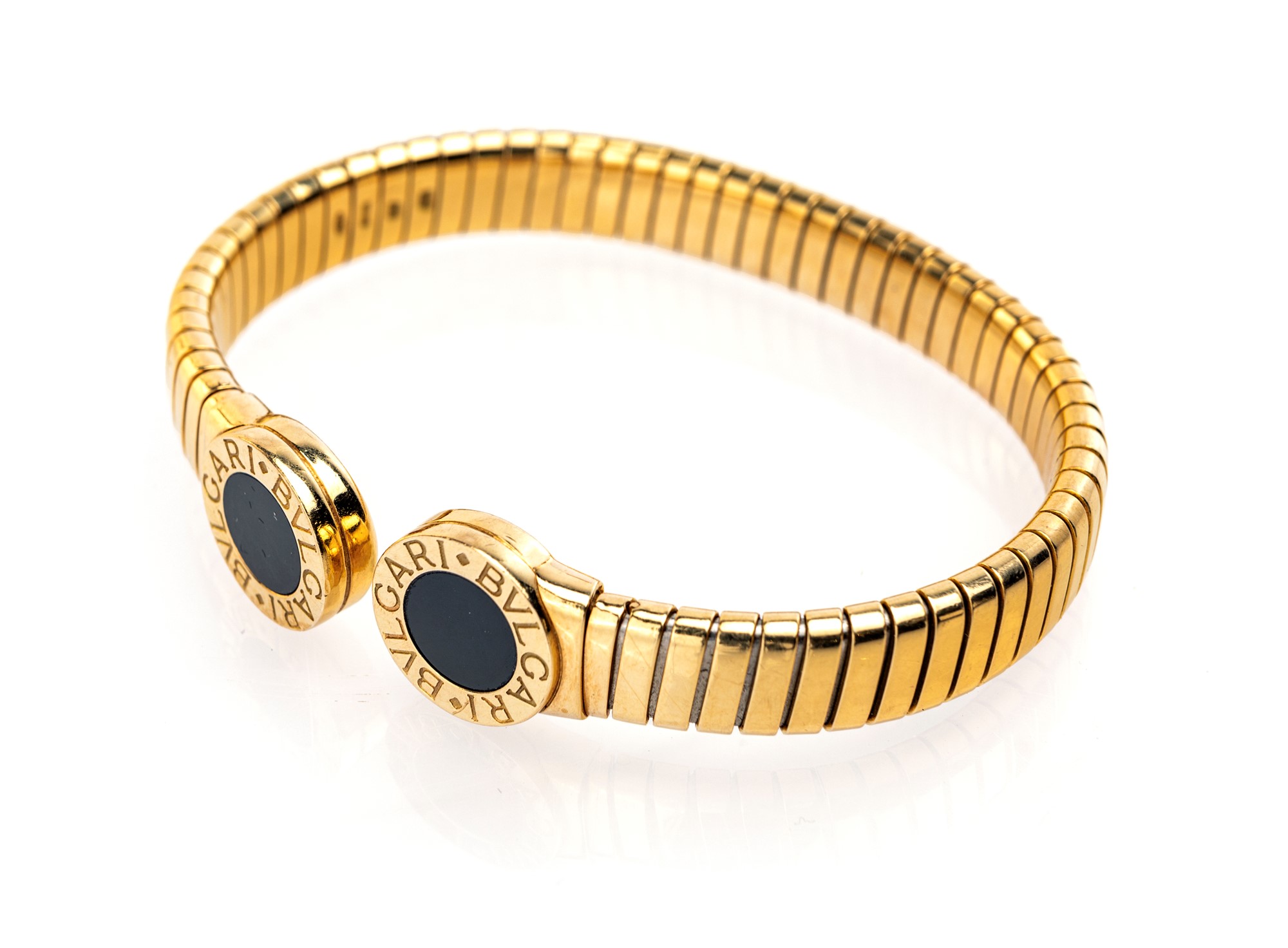 Bulgari bracciale tubogas in oro Veste polso 18 Oro giallo 750/000. Peso complessivo gr. 34,20