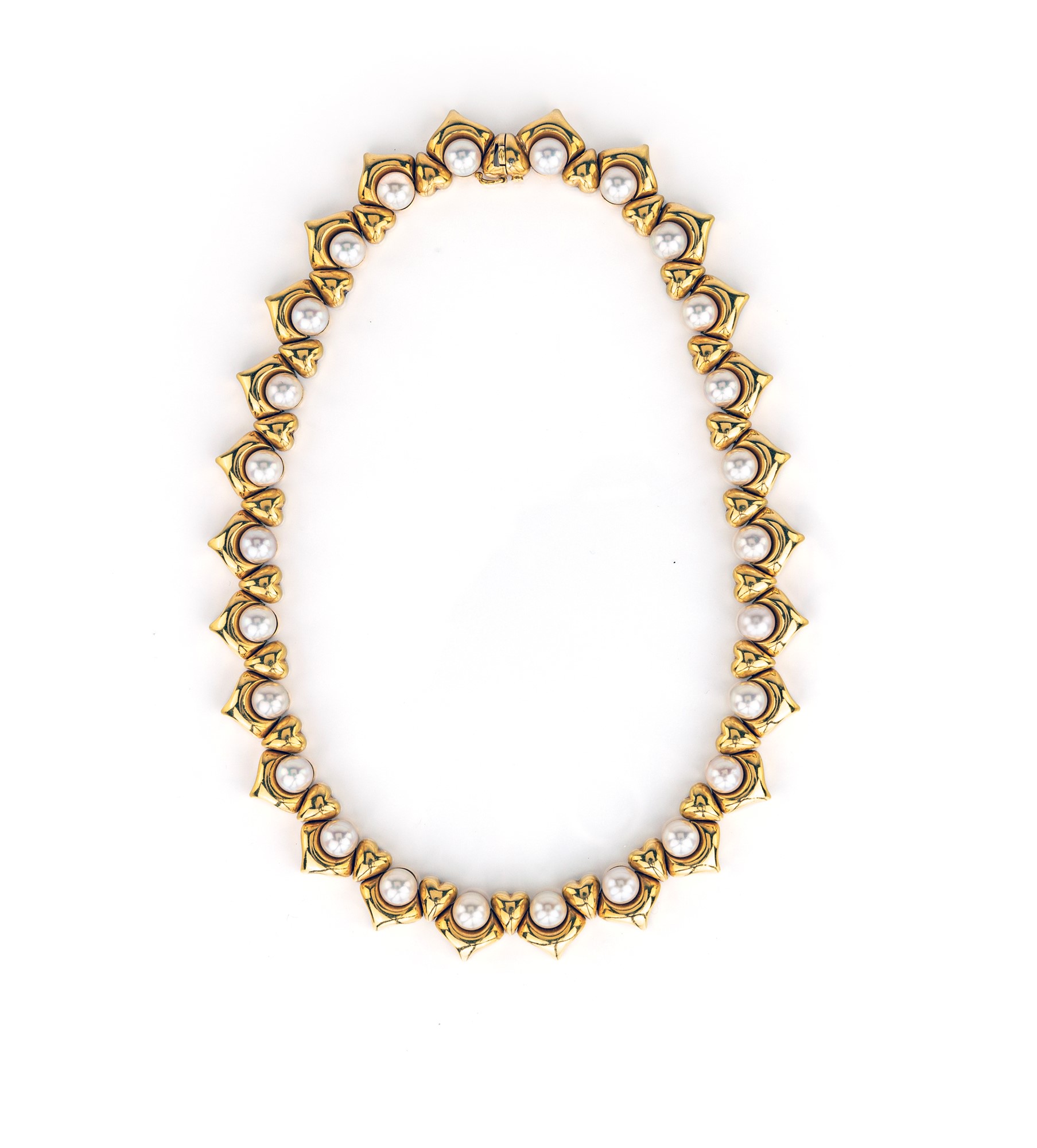Girocollo in oro con perle Lunghezza cm 43 Oro giallo 750/000. Perle naturali da coltivazione in acquamarina. Diametro 8 mm. Peco complessivo gr 123