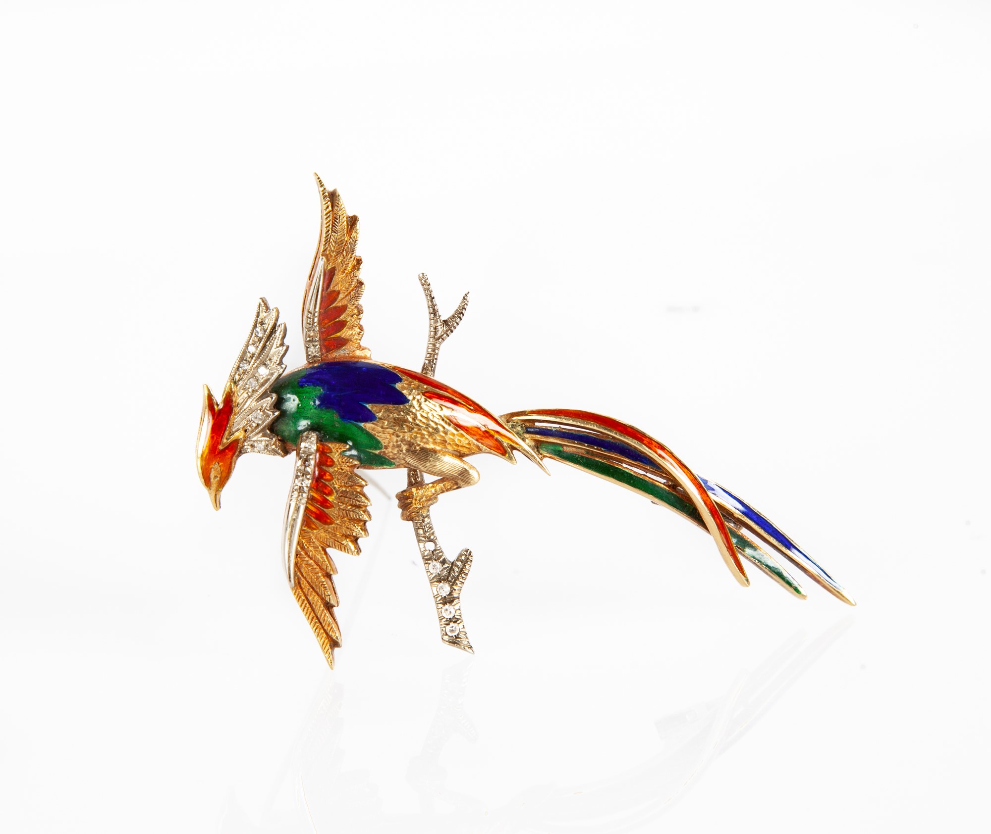 Lot 313 | Spilla araba fenice in oro, smalto e pietre