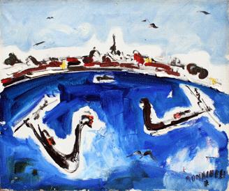 MONACHESI Sante Macerata 1910 - Roma 1991 Senza titolo olio su tela cm. 50 x 60 Firma 'Monachesi' (in basso a destra) #Firma 'Monachesi'; #timbro della Galleria Russo, Roma (al retro)