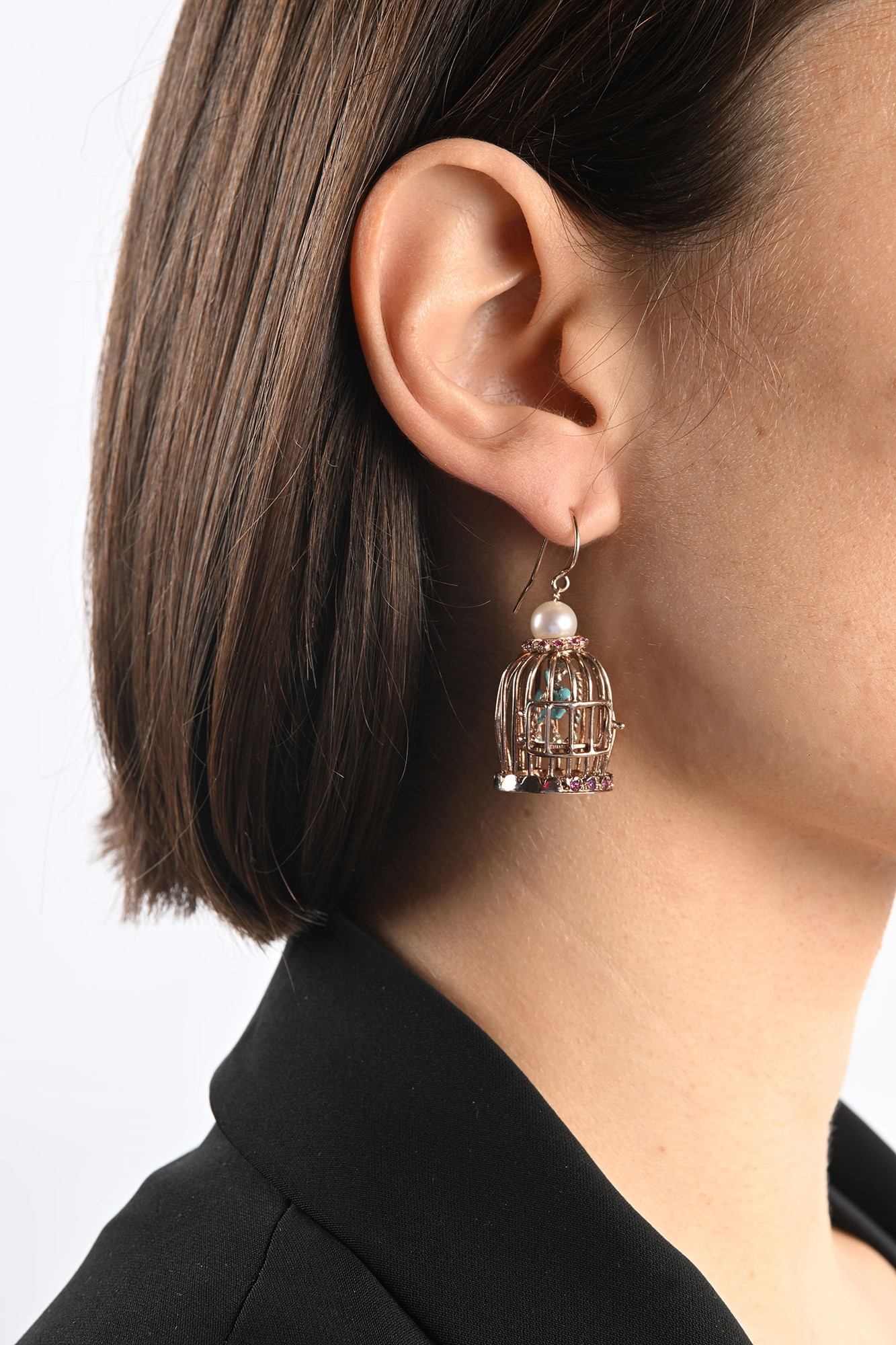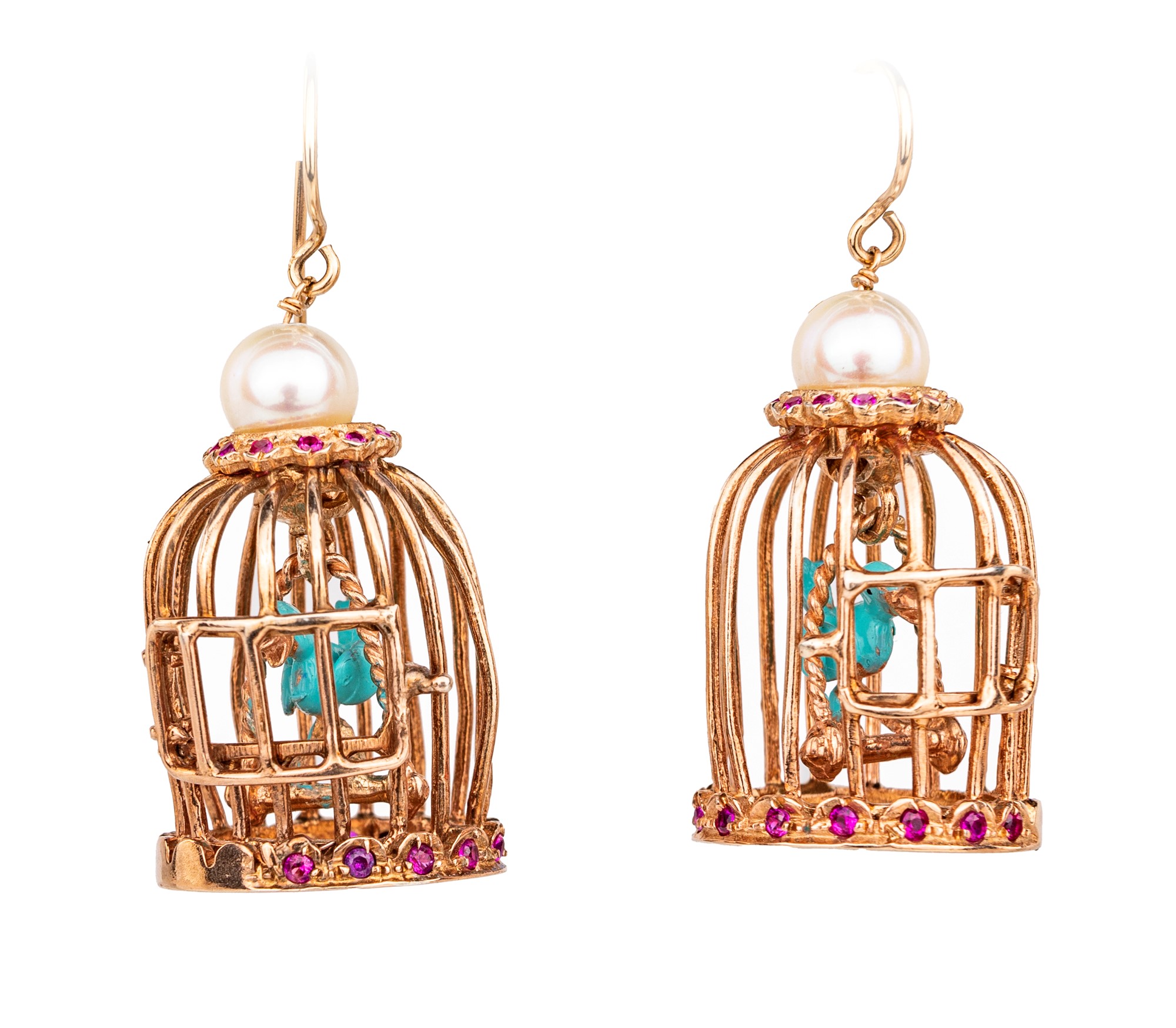 Lot 329 | Coppia di orecchini a gabbietta in oro