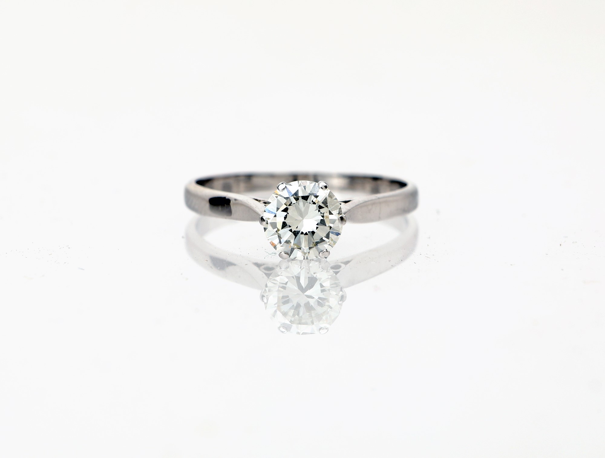 Anello in oro e brillante Misura 19 Oro bianco 750/000. Diamante in taglio rotondo brillante 0,80 ca, prob I VS. Peso complessivo gr.2,90.