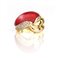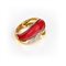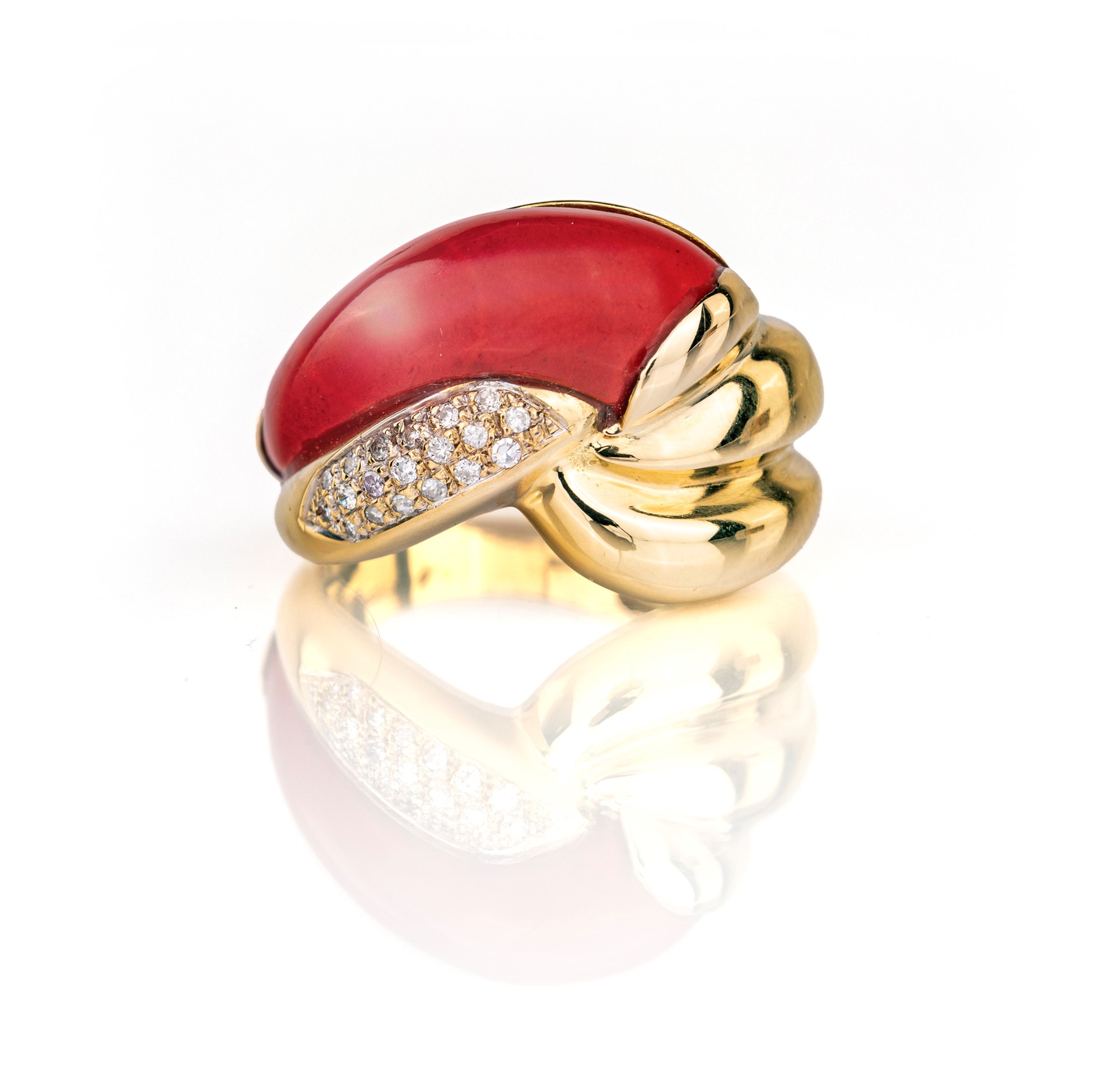 Anello in oro corallo e brillanti Misura 16 Oro giallo 750/000. Corallo rosso. Peso complessivo gr. 8,90