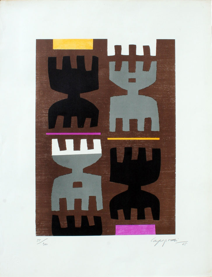 CAPOGROSSI Giuseppe Roma 1900 - Roma 1972 Senza titolo, 1965 litografia a colori cm. 72 x 56 Edizione di 300 esemplari #Firma, data 'Capogrossi, 65' (in basso a destra)