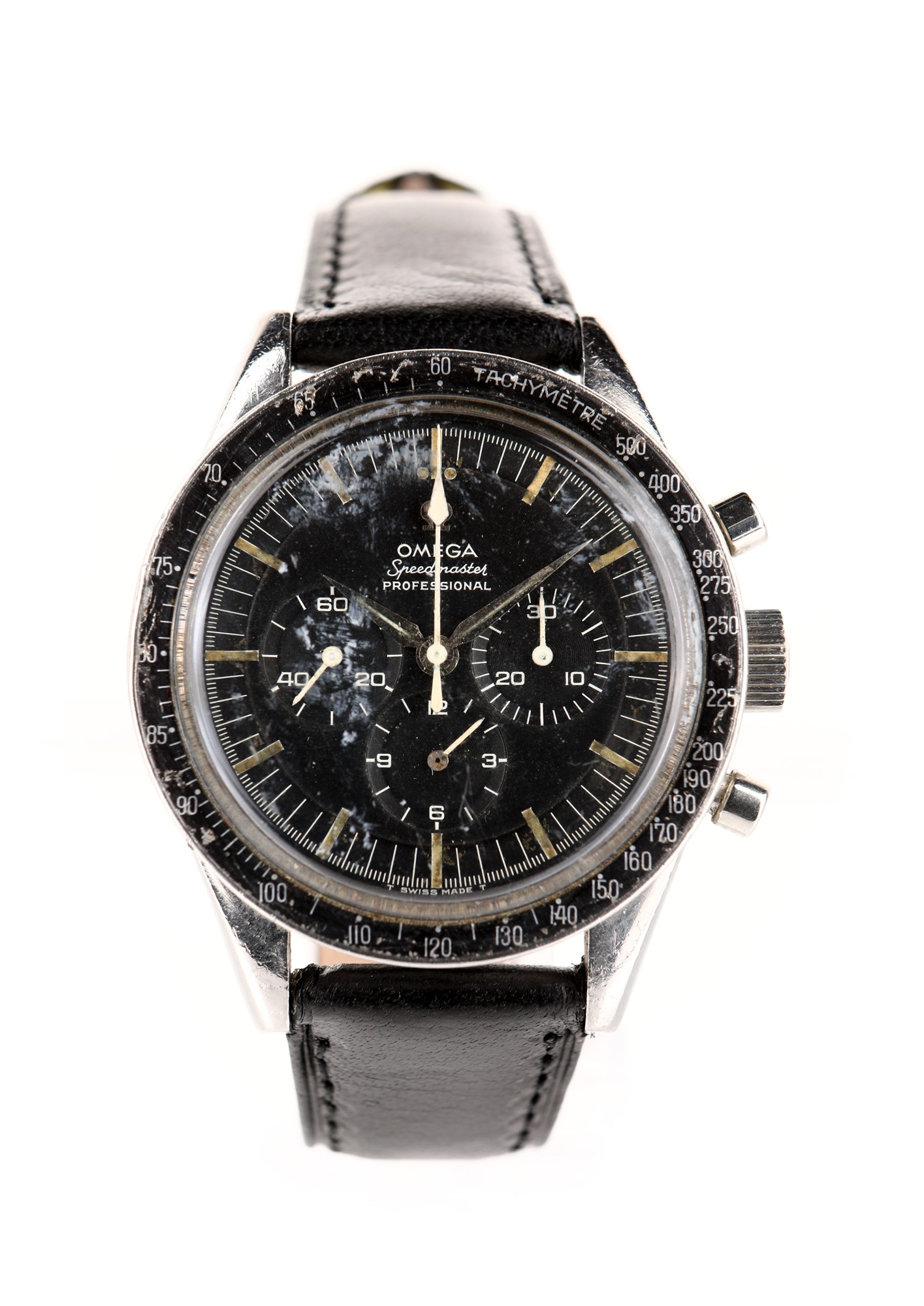 Omega Speedmaster cronografo in acciaio Diametro cassa Acciaio. Ref. 2998-62, pulsanti a pompa, ghiera con scala tachimetrica, copripolvere, fondello a vite, bracciale in acciaio generico. Quadrante nero, indici fosforescenti, quadrantini ausiliari dei secondi e dei sommatori dei minuti e delle ore, lancette alpha. Movimento manuale, dorato, cal 321, n° 19584163, bilanciere monometalico con viti, spirale Breguet, ruota a colonne. Anno 1962