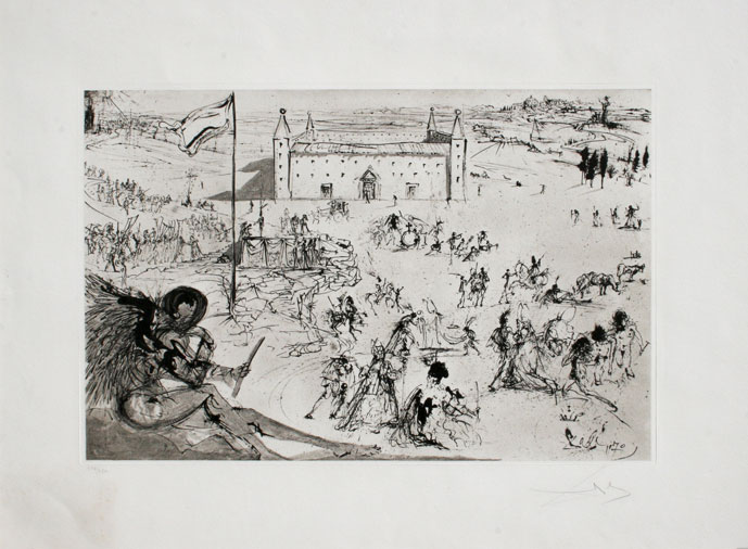 DALI' Salvador Figueres 1904 - Figueres 1989 Couronnement du roi d'Espagne, 1975 eliografia cm. 38 x 58 La misura è riferita alla parte disegnata #Edizione di 350 esemplari in nero + 350 esemplari su carta tessuta con stencil #Opera eseguita da un disegno a penna e inchiostro di Dalì #Firma, data 'Dalì, 1970' (in basso a destra nella parte disegnata); #firma 'Dalì' (in basso a destra) #Etichetta con certificato di autenticità (al retro) Bibliografia: 'Dali Catalogue Raisonné of Etchings and Mixed-Media Prints, 1924-1980', Prestel, p. 240, rif. 776