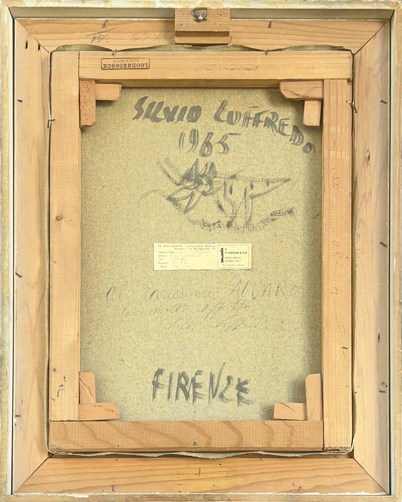 sul retro riporta la firma, il luogo (firenze), una dedica 'al carissimo Alvaro con molto affetto' e il foglio della Galleria Il Paladino di Palermo