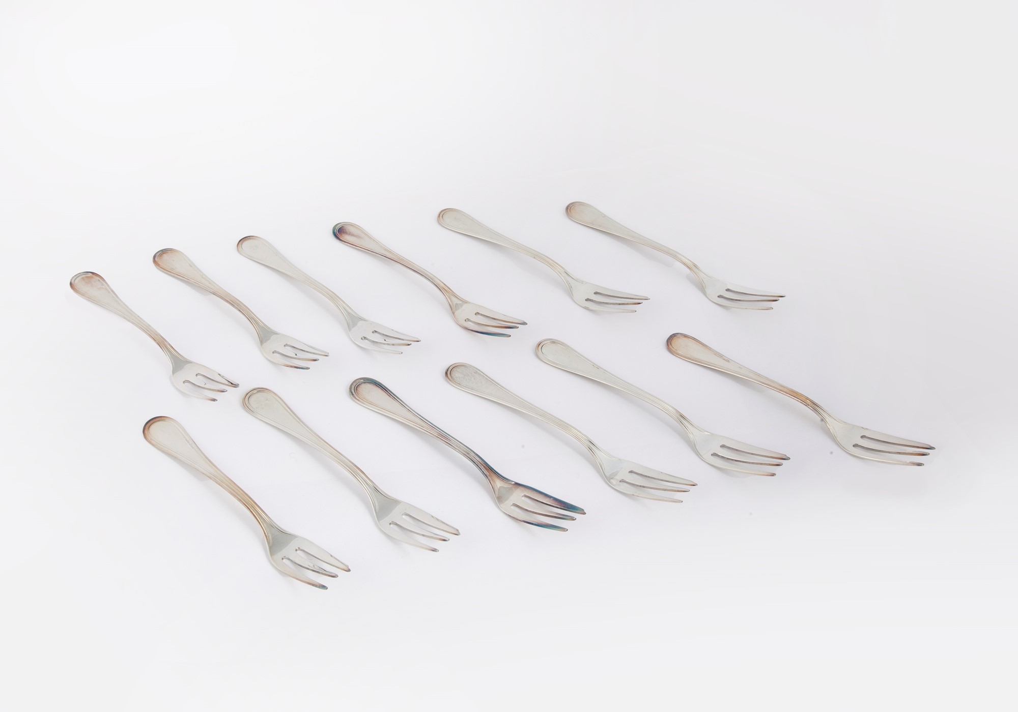 Dodici forchettine da dolce in argento 800 stile inglese cm 14,2 - peso complessivo gr. 230