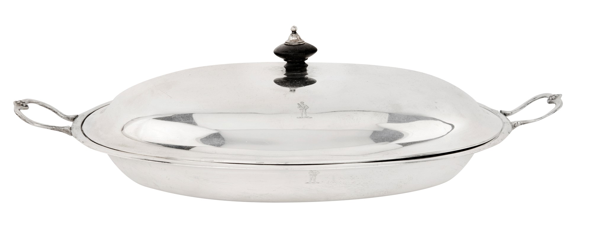 Legumiera ovale in argento 925/1000 con coperchio, Londra 1775, argentiere Charles Wrigh (attivo dal 1772)