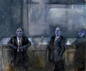 SUGHI Alberto Cesena (Fo) 1928 - Bologna, 2012 Notturno: personaggi, 1999 olio su tela cm. 100 x 120 Firma 'Sughi' (in basso a sinistra) #Firma 'Sughi' (al retro) Autentica dell'Archivio delle opere del maestro Alberto Sughi, con n° 1236, e con firma dell'artista