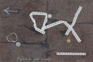 VARISCO Grazia Milano, 1937 L'opera da tre soldi s...caduti, 2002 tecnica mista su cartoncino cm. 35 x 50 Titolo, data 'L'opera da tre soldi s...caduti, 5-8/02' (in basso a sinistra); #firma 'Grazia Varisco' (in basso a destra) #Timbro di Associazione circuiti dinamici, Milano; #timbro di Circolo culturale Bertold Brecht, Milano (al retro) Bibliografia: C.Cerritelli 'Immagini per Brecht', catalogo della mostra dal 10/03 al 27/03/2003 Circolo culturale Bertold Brecht, Stampa e stampa, Seveso, 2003