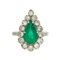 Anello in oro bianco con smeraldo a goccia colombiano (12 x 7 29 x 4 87 mm) per stimati ct 2 30 e diamanti di contorno per circa 1 15 ct.