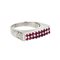 Anello in oro bianco con testa rettangolare impreziosita da pavè di rubini e diamanti.
