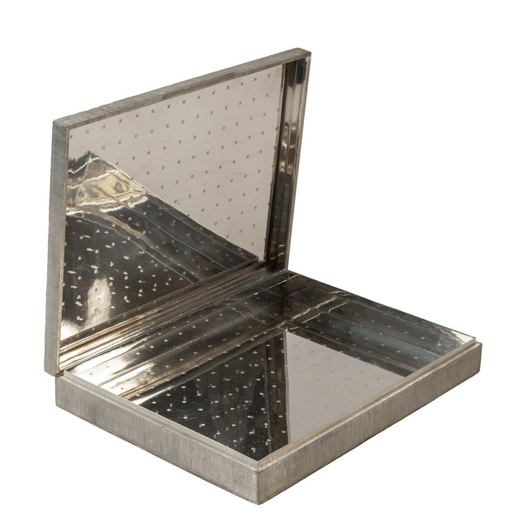 Interno specchiato a lucido con reticolo floreale punzonato.