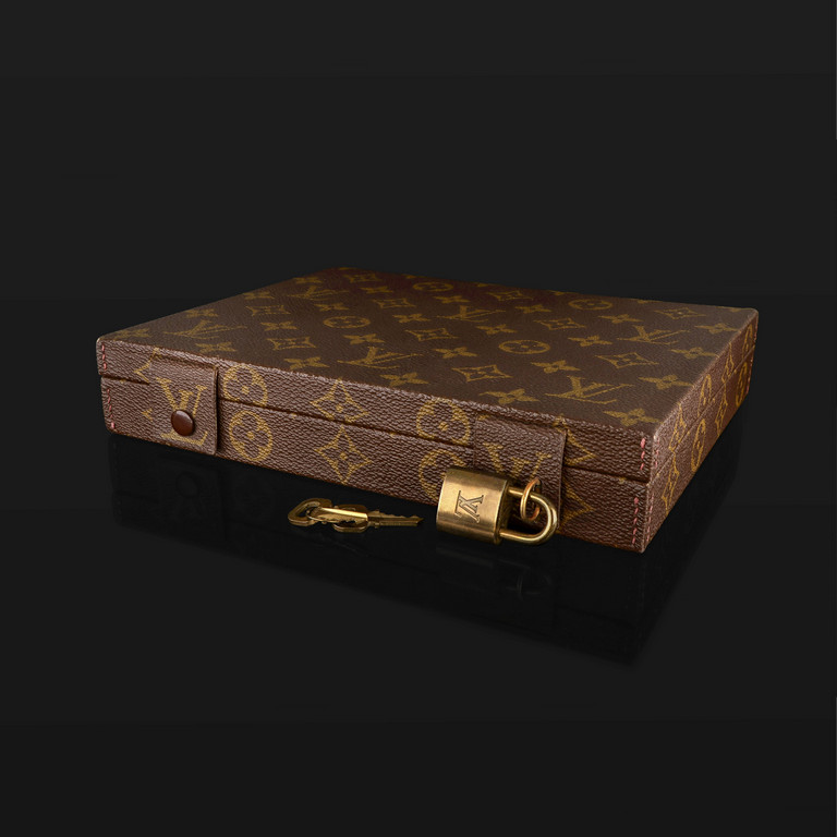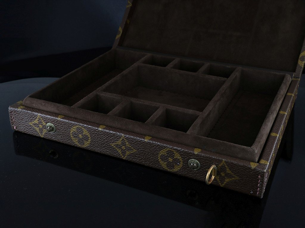 LOUIS VUITTON - raffinato porta gioielli da viaggio in ottimo stato di conservazione decorato con il classico pattern monogram. Lucchetto di sicurezza con doppia chiave 2 scomparti per orologi/bracciali 6 porta anelli e scomparto centrale di 9 5 x 7 5 cm.