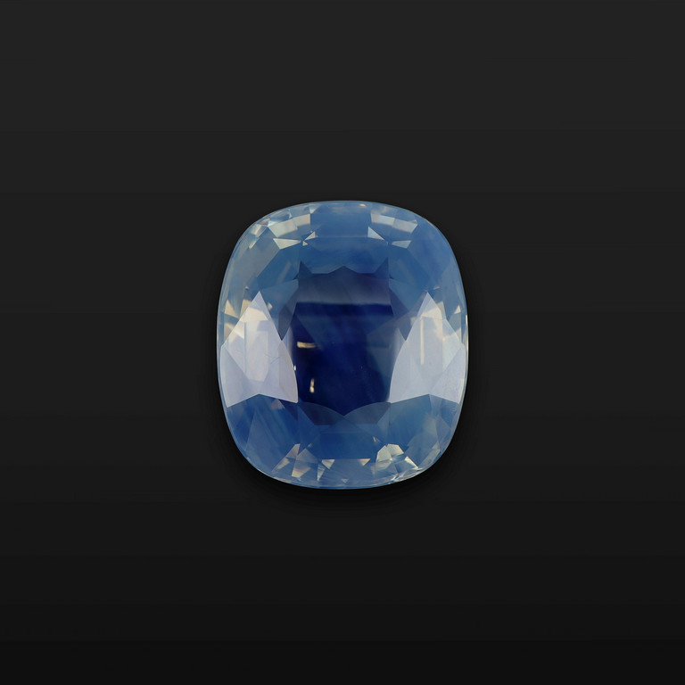 Grande zaffiro naturale tagliato a cuscino di colore particolare oltre al colore base azzurro possiede un forte pleocroismo giallo. Non presenta segni da riscaldamento la gemma risulta non trattata.