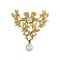 Lambert Frères Paris - Antica e fine spilla in oro giallo dorato a 24k raffigurante due chimere contrapposte e ornati da ramage di ulivo al centro diamante di taglio oldmine di ct. 0 80 ca altri piccoli sparsi sui rami splendida perla naturale a goccia pendente di 8 3 x 7 5 mm.