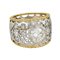 BUCCELLATI anello a fascia della tipica manifattura in oro giallo e bianco finemente inciso e satinato al centro diamante taglio brillante di stimati ct. 1 75 altri piccoli ai lati a sottolineare la lavorazione a pizzo in perfette condizioni.