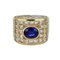 Imponente anello in oro bianco e giallo a pavè con diamanti taglio princess e tondi per stimati 8 ct circa e zaffiro centrale ovale incassato battuto di stimati 3 00 ct. (9 30 x 7 80 x 4 98 mm).