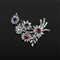 CUSI - importante Spilla a ramage floreale di grandi dimensioni con diamanti navette baguette e tondi per un totale stimato di 13 ct circa completano i pistilli due rubini e due zaffiri per totali 5 ct circa complessivi. (le gemme non risultato riscaldate).