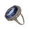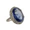Elegante e finissimo anello in platino di epoca liberty grande zaffiro naturale non riscaldato di stimati ct. 14 00 incastonato tra due file di piccoli diamanti taglio antico e 8/8.