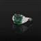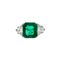 Importante anello in oro bianco con smeraldo centrale di forma rettangolare taglio a gradini di 4 70 ct affiancato da due diamanti di forma triangolare con angoli scantonati per un totale di circa 1 40 ct.