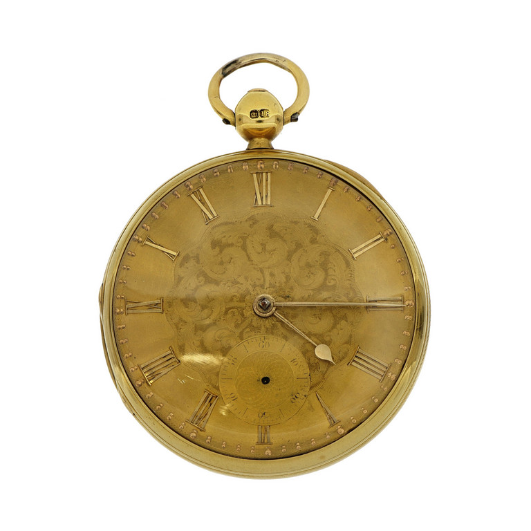 Edward Watson London - Grande orologio da tasca in oro giallo quadrante oro inciso piccoli secondi ad ore sei (sfera mancante). Indici romani movimento n°1572 regolazione fine del tempo.