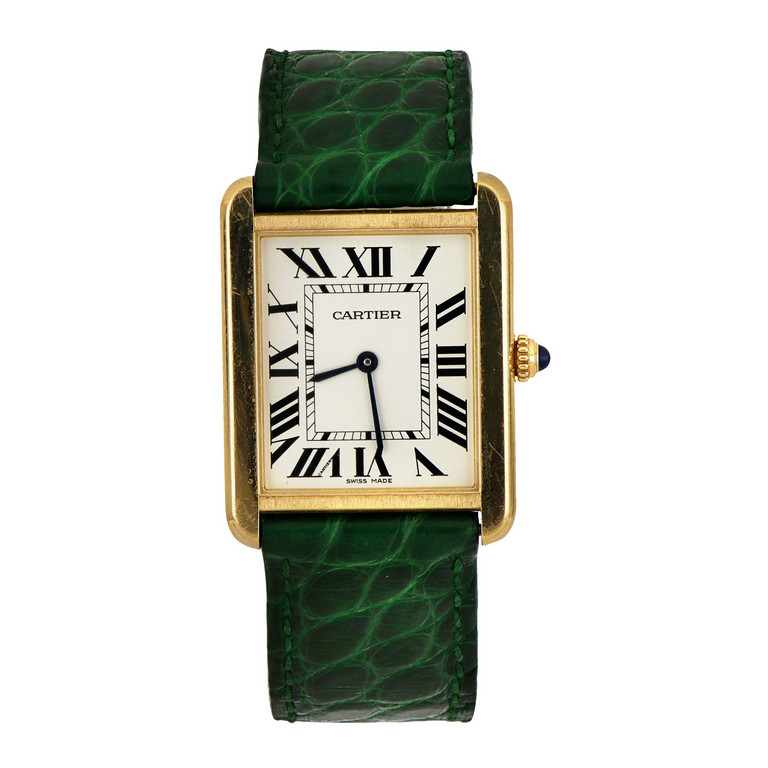 CARTIER - Tank Solo referenza 3167 movimento al quarzo Cartier 690. Cassa rettangolare in oro giallo fondello in acciaio quadrante bianco con indici romani stampati grafica nera chemin de fer sfere gladio azzurrate. fibbia originale.