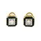 Orecchini sportivi in oro giallo di forma squadrata al centro due diamanti taglio brillante per complessivi ct. 1 0 ca. e zaffiri carre' incassati a binario per ct. 3 0 ca.