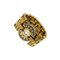 Anello in oro giallo con diamante di taglio antico centrale di circa 0 45 ct e piccoli diamantini di contorno gambo a maglia panther.