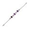 Bracciale in oro bianco a foggia geometrica 3 quarzi ametista intercalati da quadri geometrici questi tempestati di piccoli diamanti taglio brillante terminano con una catena a cunei impernati e snodati.