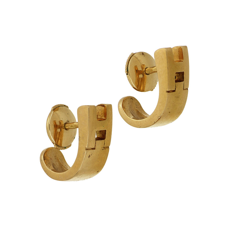 Hermes classici e sportivi orecchini a lobo in oro giallo con logo della maison perno e premis brevettato.