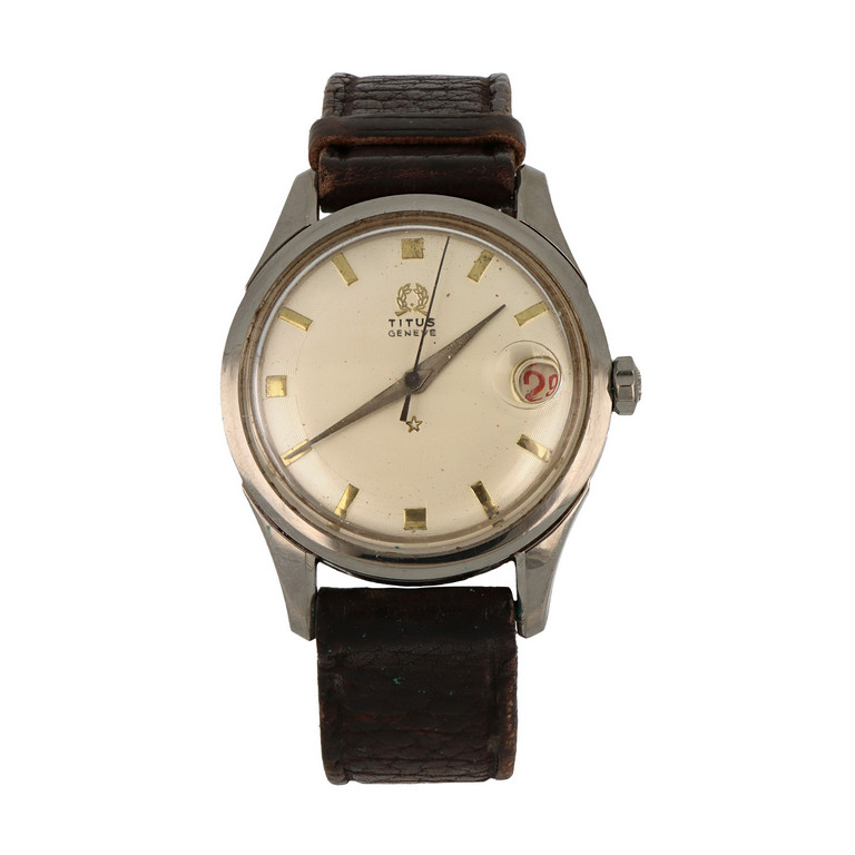 TITUS - De Luxe orologio meccanico con movimento automatico in acciaio anni '50 red data quadrante crema indici applicati cassa incabloc impermeabile seriale 1471495