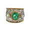 Anello da mignolo in oro giallo e bianco stile 'Bucellati' al centro luminoso smeraldo taglio rotondo di stimati ct. 1 20 e a lato due diamanti taglio rosa.