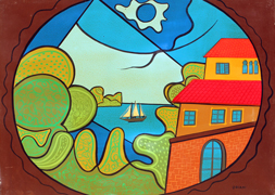 ORIANI Pippo Torino 1909 - Roma 1972 Paesaggio della Costa, anni 70 olio su tela cm. 50 x 70 Firma 'Oriani' (in basso a destra) #Etichetta e timbro dello Studio Oriani (al retro) Conferma di autenticità via mail da parte di Centro Diffusione Arte, Milano