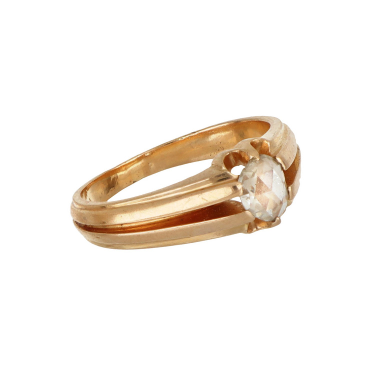 Anello in oro rosa da uomo con al centro diamante taglio rosa rotondo di ct 0 40 ca.