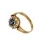 Anello in oro giallo a margherita al centro luminoso zaffiro naturale di ct.0 70 ca. contornato di diamanti taglio rosa.
