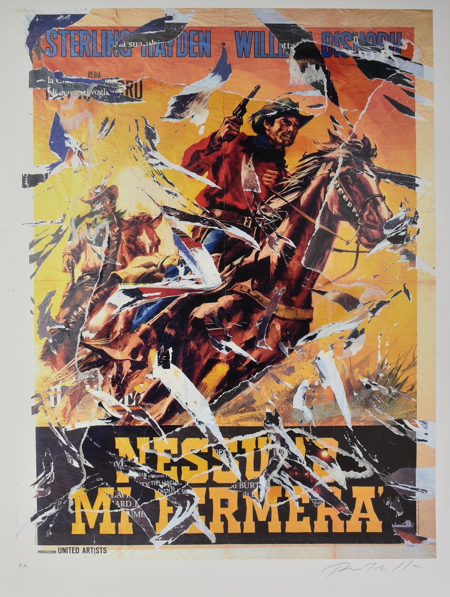 Mimmo Rotella (1918 - 2006) NESSUNO MI FERMERA' TOP GUN multiplo decollage su...