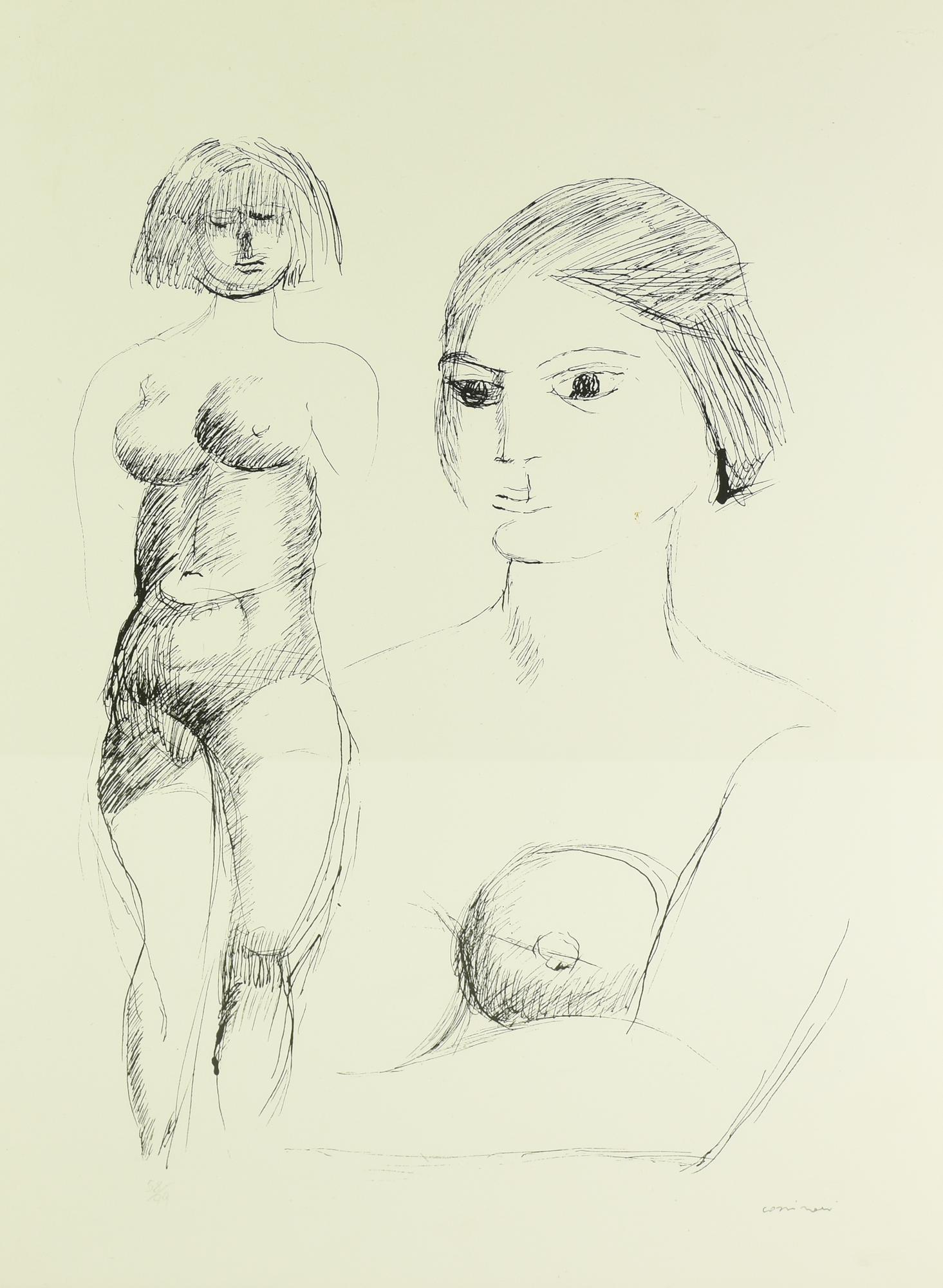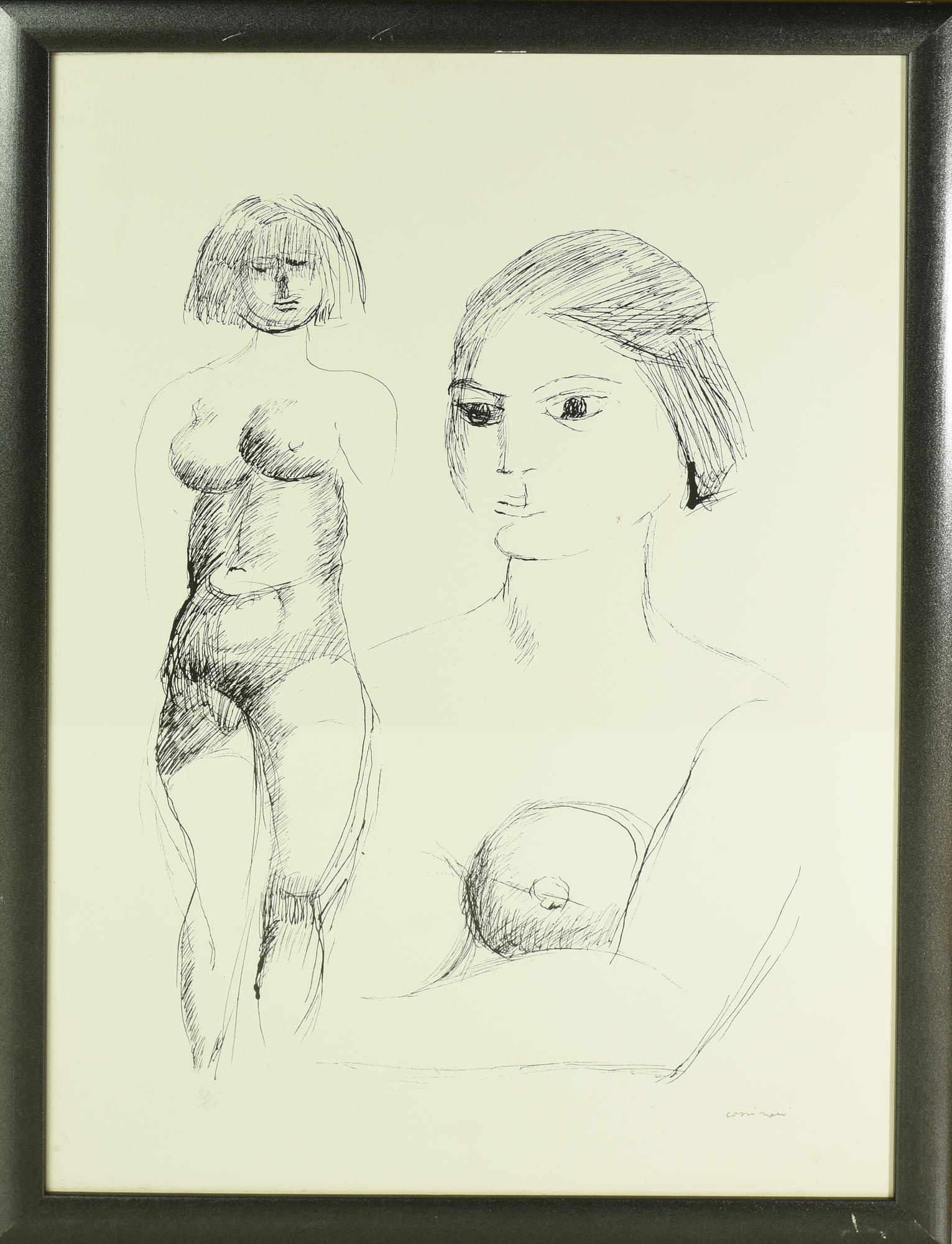 Bruno Cassinari (1912 - 1992) DUE FIGURE FEMMINILI litografia, cm 50x35; es....
