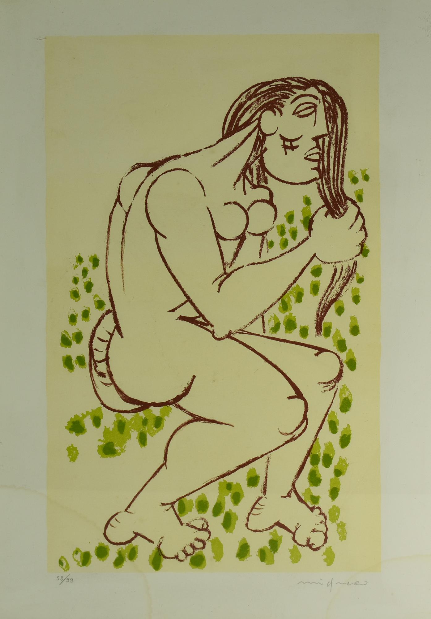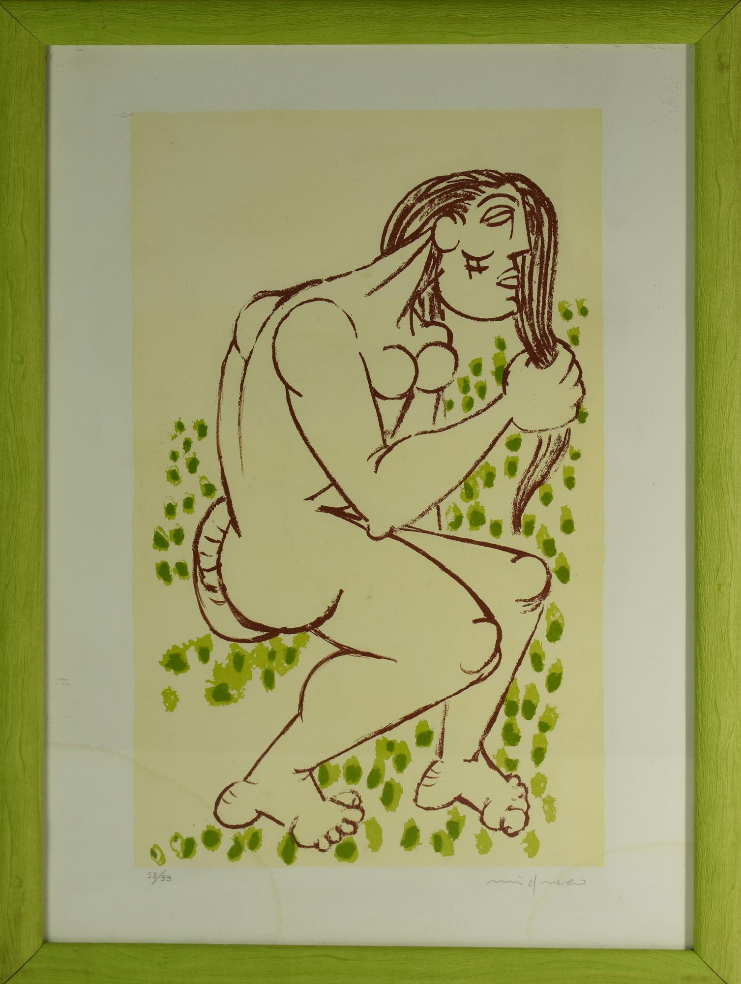 Giuseppe Migneco (1908 - 1997) DONNA CHE SI PETTINA litografia, cm 50x35; es....