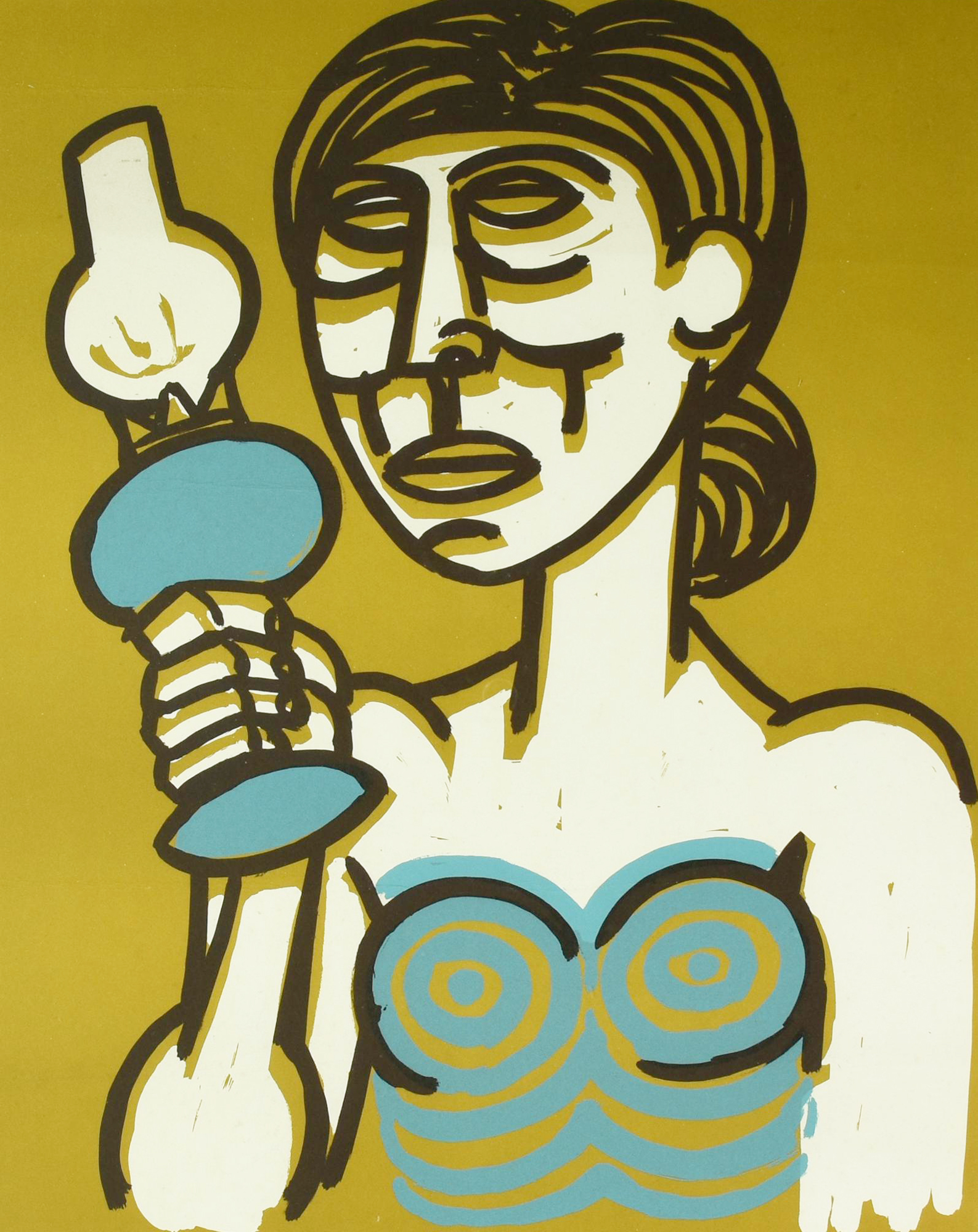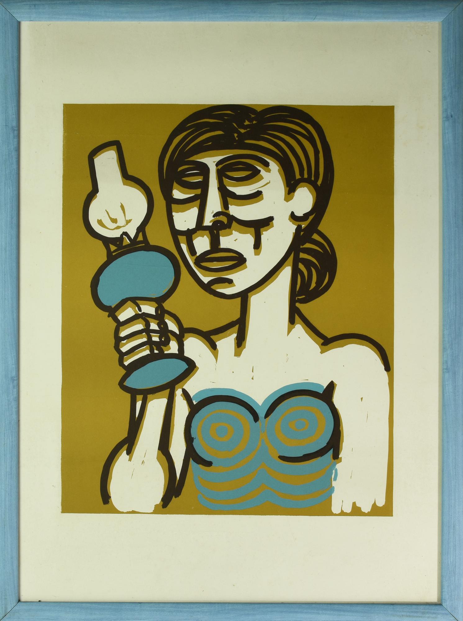 Giuseppe Migneco (1908 - 1997) DONNA CON LAMPADA AD OLIO litografia, cm...